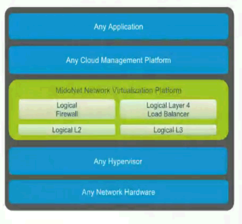 Midonet from Midokura is designed to provide the following network functionalities by placing a network virtualization layer between cloud management platform layer (e.g., OpenStack) and Hypervisor layer (e.g., KVM).