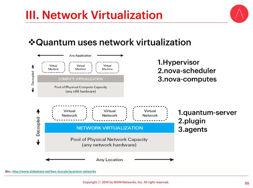 - Neutron: OpenStack changed the name of "Quantum" to "Neutron". (Many people says that there should be some copyright issues..)