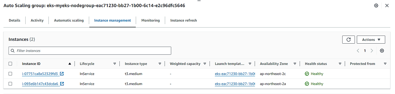 myeks myeks-nodegroup ACTIVE 2024-03-09T18:02:34Z 2 2 2 t3.medium AL2_x86_64 eks-myeks-nodegroup-eac71230-bb27-1b00-6c14-e2c96dfc5646 managed