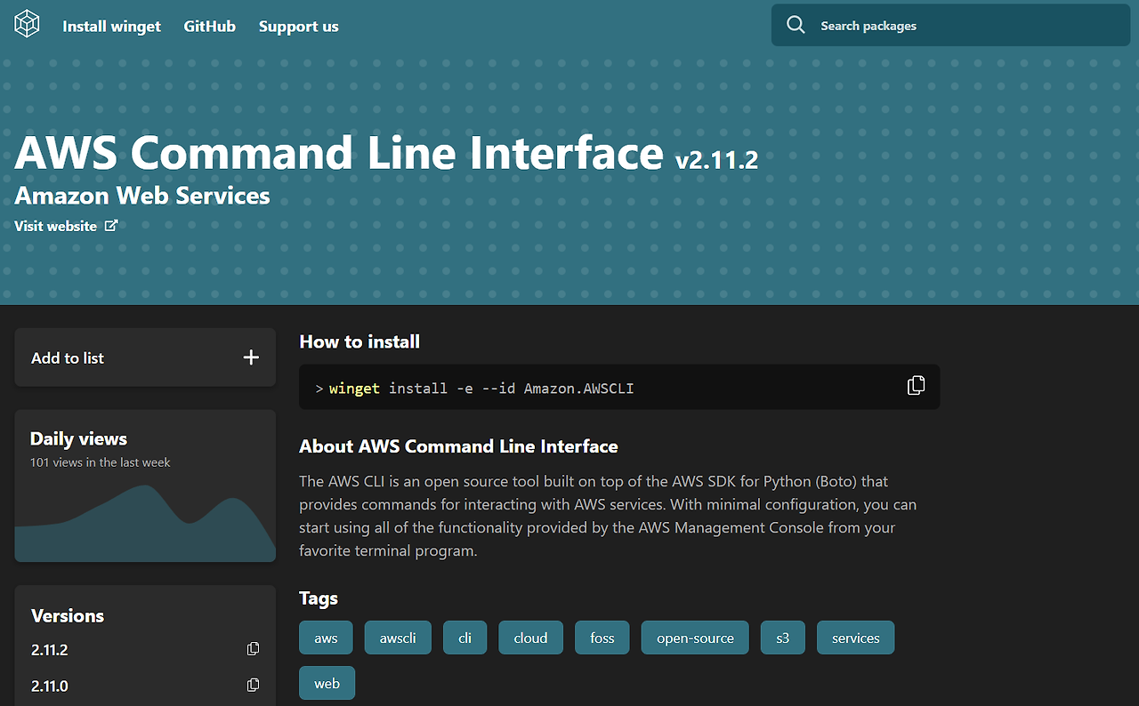 AWS CLI is a command-line tool that lets you manage AWS services. By running aws configure, you can easily set up your Access Key ID, Secret Access Key, and your target region name to control your AWS services. Initially, you might have downloaded and installed AWS CLI directly from the official website. However, checking for updates and upgrading to the latest version can be tedious. This is where winget comes in handy for managing AWS CLI upgrades.